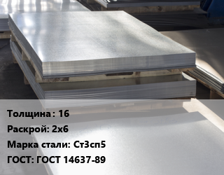 Лист горячекатаный 16 2х6 Сталь: Ст3сп5 ГОСТ: ГОСТ 14637-89