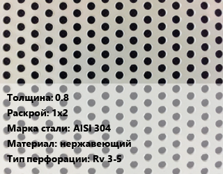 Лист перфорированный 0.8 1х2 Марка: AISI 304 нержавеющий Rv 3-5