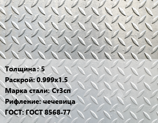 Лист рифленый 5 0.999х1.5 Сталь: Ст3сп чечевица ГОСТ: ГОСТ 8568-77