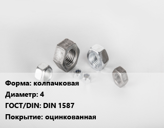 Гайка колпачковая D=4 DIN 1587 оцинкованная, упаковка 100 шт, Китай цена от 72.48 ₽ / кг, где купить, условия доставки в Барнауле и Барнаульской области