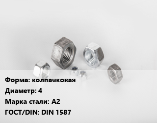 Гайка колпачковая D=4 Сталь: А2 DIN 1587, упаковка 1000 шт цена от 2 036 ₽ / кг, где купить, условия доставки в Барнауле и Барнаульской области