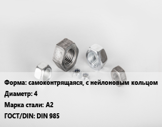 Гайка самоконтрящаяся, с нейлоновым кольцом D=4 Сталь: А2 DIN 985