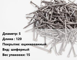 Гвоздь 5х120 оцинкованный шиферный 15, кг цена от 107.46 ₽ / кг, где купить, условия доставки в Барнауле и Барнаульской области