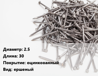 Гвоздь 2.5х30 оцинкованный ершеный, по запросу, кг цена от 167.84 ₽ / кг, где купить, условия доставки в Барнауле и Барнаульской области