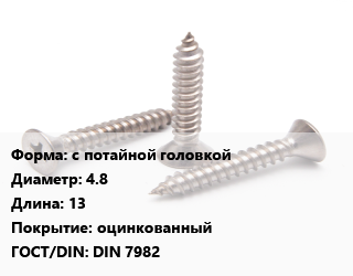 Саморез с потайной головкой D=4.8 L=13 оцинкованный ГОСТ: DIN 7982
