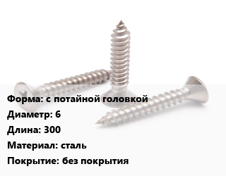Саморез с потайной головкой D=6 L=300 сталь без покрытия, упаковка 1800 шт цена от 1 364 ₽ / кг, где купить, условия доставки в Барнауле и Барнаульской области