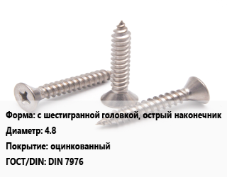 Саморез с шестигранной головкой, острый наконечник D=4.8 оцинкованный ГОСТ: DIN 7976, кг цена от 1 358 ₽ / кг, где купить, условия доставки в Барнауле и Барнаульской области
