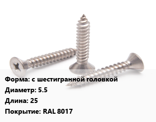 Саморез с шестигранной головкой D=5.5 L=25 RAL 8017