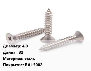 Саморез 4.8 L=32 сталь RAL 5002, упаковка 1000 шт, для кровельных материалов цена от 1 583 ₽ / кг, где купить, условия доставки в Барнауле и Барнаульской области