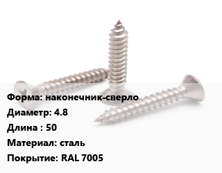 Саморез наконечник-сверло D=4.8 L=50 сталь RAL 7005, упаковка 1200 шт цена от 3 227 ₽ / кг, где купить, условия доставки в Барнауле и Барнаульской области