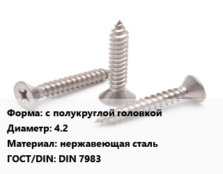 Саморез с полукруглой головкой D=4.2 нержавеющая сталь ГОСТ: DIN 7983
