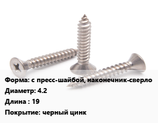 Саморез с пресс-шайбой, наконечник-сверло D=4.2 L=19 черный цинк, упаковка 1000 шт цена от 422.34 ₽ / кг, где купить, условия доставки в Барнауле и Барнаульской области