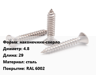 Саморез наконечник-сверло D=4.8 L=29 сталь RAL 6002, упаковка 100 шт цена от 234 ₽ / кг, где купить, условия доставки в Барнауле и Барнаульской области