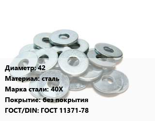 Шайба 42 сталь Сталь: 40Х без покрытия ГОСТ: ГОСТ 11371-78, шт цена от 42.75 ₽ / кг, где купить, условия доставки в Барнауле и Барнаульской области
