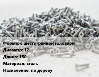 Шуруп с шестигранной головкой 12х150 сталь по дереву, упаковка 1000 шт цена от 20 209 ₽ / кг, где купить, условия доставки в Барнауле и Барнаульской области