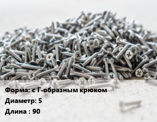 Шуруп с Г-образным крюком 5х90 сталь оцинкованный, упаковка 100 шт, Китай цена от 253.92 ₽ / кг, где купить, условия доставки в Барнауле и Барнаульской области