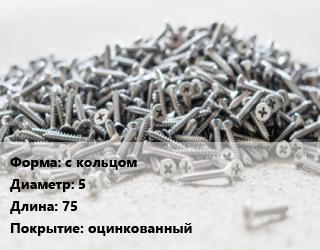 Шуруп с кольцом 5х75 оцинкованный, упаковка 100 шт, Китай цена от 347.73 ₽ / кг, где купить, условия доставки в Барнауле и Барнаульской области