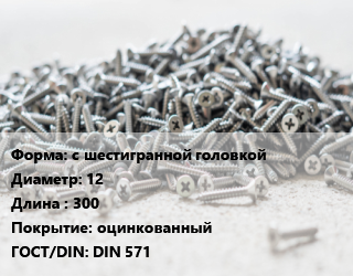 Шуруп с шестигранной головкой 12х300 оцинкованный ГОСТ: DIN 571, кг, Китай цена от 271.3 ₽ / кг, где купить, условия доставки в Барнауле и Барнаульской области
