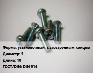 Винт установочный, с заостренным концом 5х10 DIN 914, 12.9, цена за шт, кг цена По запросу где купить, условия доставки в Барнауле и Барнаульской области