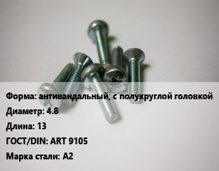 Винт антивандальный, с полукруглой головкой 4.8х13 ART 9105 Сталь: А2, цена за шт,шлиц spanner, кг цена от 51.46 ₽ / кг, где купить, условия доставки в Барнауле и Барнаульской области