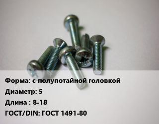 Винт с полупотайной головкой 5х8-18 ГОСТ 1491-80