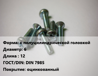 Винт с полуцилиндрической головкой 6х12 DIN 7985 оцинкованный