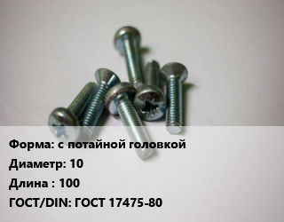 Винт с потайной головкой 10х100 ГОСТ 17475-80