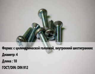 Винт с цилиндрической головкой, внутренний шестигранник 4х10 DIN 912