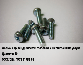 Винт с цилиндрической головкой, с шестигранным углубл. 10 ГОСТ 11738-84