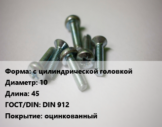 Винт с цилиндрической головкой 10х45 DIN 912 оцинкованный, 8.8, кг цена от 29.48 ₽ / кг, где купить, условия доставки в Барнауле и Барнаульской области