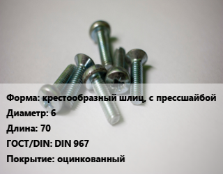 Винт крестообразный шлиц, с прессшайбой 6х70 DIN 967 оцинкованный, кг цена от 160.35 ₽ / кг, где купить, условия доставки в Барнауле и Барнаульской области