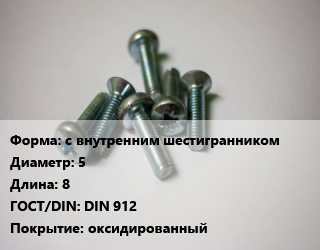Винт с внутренним шестигранником 5х8 DIN 912 оксидированный, 12.9, цена за шт, кг цена от 7.56 ₽ / кг, где купить, условия доставки в Барнауле и Барнаульской области