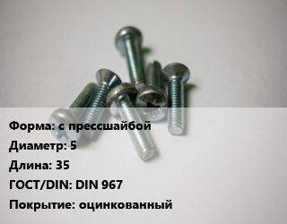 Винт с прессшайбой 5х35 DIN 967 оцинкованный, цена за шт, кг цена от 5.23 ₽ / кг, где купить, условия доставки в Барнауле и Барнаульской области