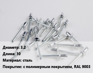 Заклепка 3.2х10 сталь с полимерным покрытием, RAL 9003, упаковка 1000 шт цена от 471.98 ₽ / шт, где купить, условия доставки в Барнауле и Барнаульской области