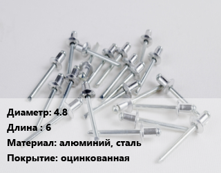 Заклепка 4.8х6 алюминий, сталь оцинкованная
