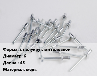 Заклепка с полукруглой головкой 6х45 медь, шт цена от 97.72 ₽ / шт, где купить, условия доставки в Барнауле и Барнаульской области