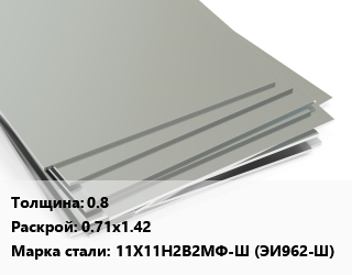 Лист нержавеющий 0.8 0.71х1.42 Сталь: 11Х11Н2В2МФ-Ш (ЭИ962-Ш)