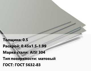 Лист нержавеющий 0.5 0.45х1.5-1.99 Сталь: AISI 304 Тип:матовый ГОСТ 5632-83