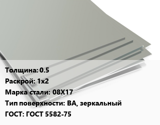 Лист нержавеющий 0.5 1х2 Сталь: 08Х17 Тип:BA, зеркальный ГОСТ 5582-75, х/к цена от 136 964 ₽ / т, где купить, условия доставки в Барнауле и Барнаульской области