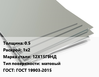 Лист нержавеющий 0.5 1х2 Сталь: 12Х15Г9НД Тип:матовый ГОСТ 19903-2015