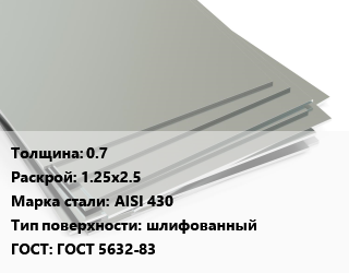 Лист нержавеющий 0.7 1.25х2.5 Сталь: AISI 430 Тип:шлифованный ГОСТ 5632-83, шт, х/к цена от 3 654 ₽ / т, где купить, условия доставки в Барнауле и Барнаульской области