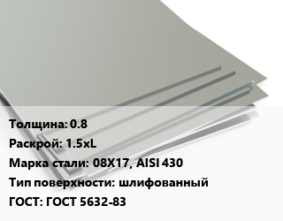 Лист нержавеющий 0.8 1.5хL Сталь: 08Х17, AISI 430 Тип:шлифованный ГОСТ 5632-83
