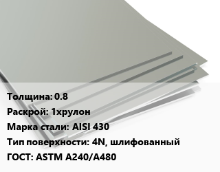 Лист нержавеющий 0.8 1хрулон Сталь: AISI 430 Тип:4N, шлифованный ASTM A240/A480, шт, в пленке цена от 163 115 ₽ / т, где купить, условия доставки в Барнауле и Барнаульской области