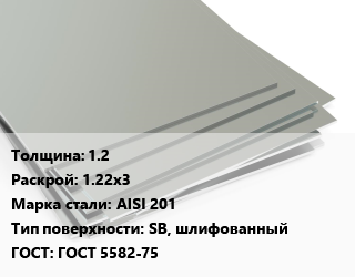 Лист нержавеющий 1.2 1.22х3 Сталь: AISI 201 Тип:SB, шлифованный ГОСТ 5582-75, в пленке, по запросу цена от 212 692 ₽ / т, где купить, условия доставки в Барнауле и Барнаульской области