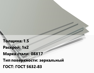 Лист нержавеющий 1.5 1х2 Сталь: 08Х17 Тип:зеркальный ГОСТ 5632-83