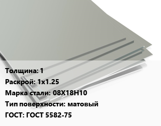 Лист нержавеющий 1 1х1.25 Сталь: 08Х18Н10 Тип:матовый ГОСТ 5582-75, шт цена от 7 268 ₽ / т, где купить, условия доставки в Барнауле и Барнаульской области