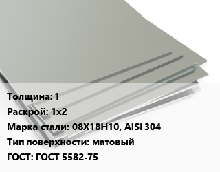 Лист нержавеющий 1 1х2 Сталь: 08Х18Н10, AISI 304 Тип:матовый ГОСТ 5582-75 цена от 284 750 ₽ / т, где купить, условия доставки в Барнауле и Барнаульской области
