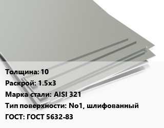 Лист нержавеющий 10 1.5х3 Сталь: AISI 321 Тип:No1, шлифованный ГОСТ 5632-83